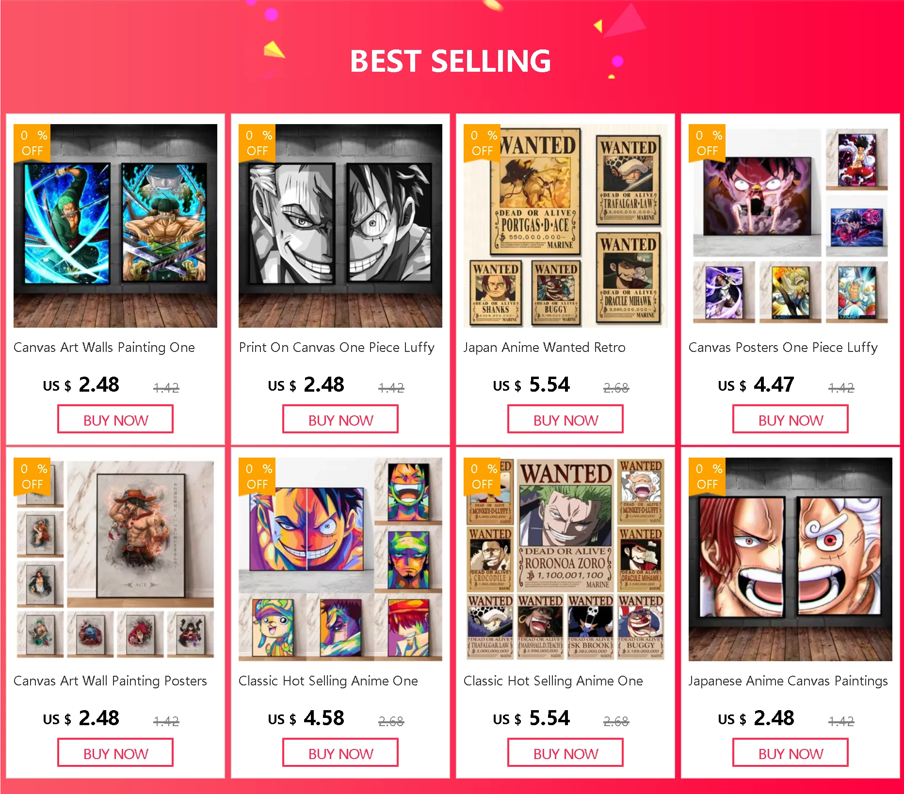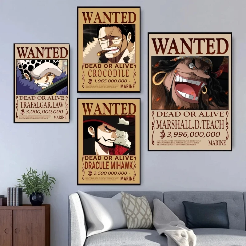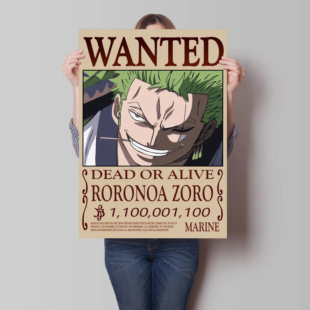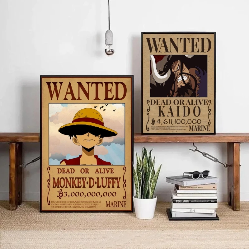 Classic Hot Selling Anime One Piece Luffy Zoro Bounty Wanted Poster Cartoon Character Canvas Printing Living Room Decor Posters