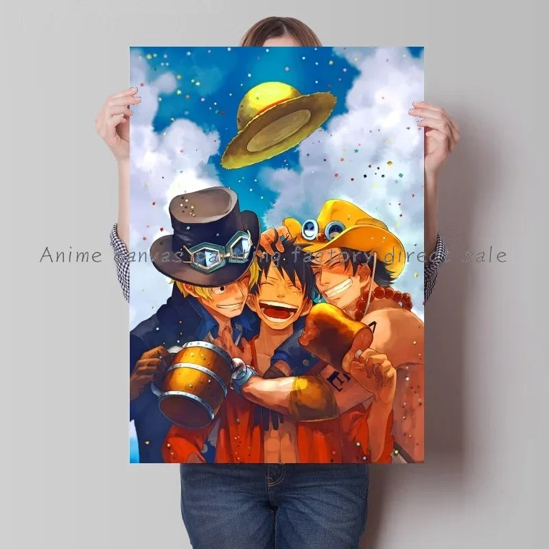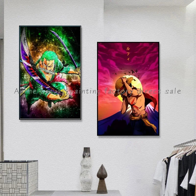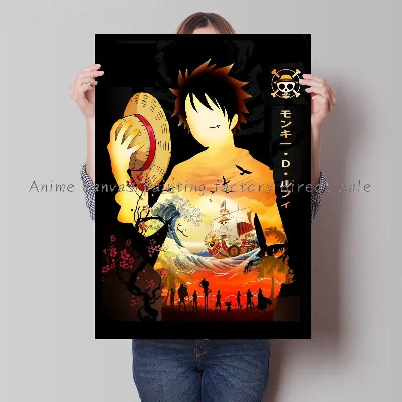 Japan Bandai Retro Anime Surrounding One Piece Luffy Art Canvas Painting Posters Print Mural Home Wall Aesthetic Room Decor