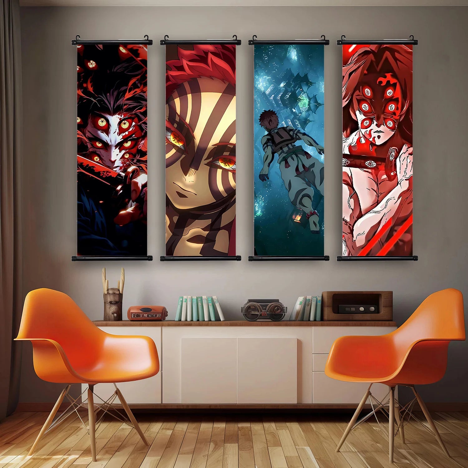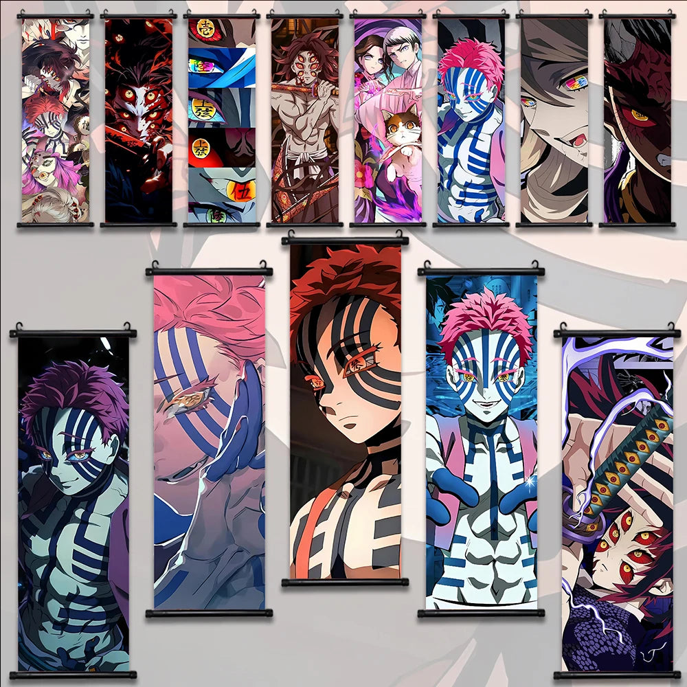 Japanese Anime HD Demon Slayer Akaza Canvas Scroll Wall Hanging Art Home Decor Gifts Bedroom Living Room Decoration Prints Gift